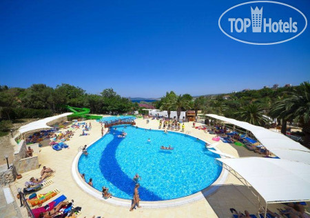 Прилетели мы с дочкой рано утром в Измир. Нас встретили в аэропорту представители компании Корал Тревел и привезли в отель. От аэропорта ехать примерно 45-50 минут. На день прилета, в этом отеле уже отдыхала моя старшая дочь с мужем и сестра с семьей. Я узнала, что номерной фонд разный. Есть более менее новые номера, а есть убитые старые. Естественно, накануне моего прилета, дочь подошла на ресепшен и попросила, чтобы нам дали отремонтированный номер. Заселения ждали где-то до 11.30, что в принципе не плохо по европейским меркам. Номер нам дали хороший, на первом этаже, напротив бассейна с морской водой. Нас все устроило, но мы не обратили сначала внимание на то, что в двери внизу, при входе в номер, есть небольшая щелочка. Сейчас объясню, почему на этом заостряю свое внимание в отзыве. Вечером дочка пошла в номер чуть раньше меня и вылетела оттуда в истерике с криками, у нас в номере сколопендра. Старшая дочь, зять и я были в недоумении, и сказали ей, что не придумывай, быть этого не может. Но…. мы ошиблись. Зайдя в номер, спросили у нее где? Она указала под свою кровать. И действительно, отодвинув кровать, мы увидели эту мерзкую гадость, достаточно приличных размеров. Благо с нами был зять и он обезвредил ее тем, что было под рукой, кроссовком. Сейчас это выглядит не много смешно, но в тот момент было совсем не до смеха и страшно. Младшая дочь была просто в истерике от увиденного насекомого. Естественно мы пошли на ресепшен с просьбой, меняйте нам номер. На что, они сказали, что естественно отель переполнен и свободных номеров нет. И да, те кто собирается ехать в этот отель, будьте готовы к тому, что на ресепшене никто, абсолютно, не говорит на русском языке. Благо старшая дочка владеет английским, и она то, и общалась с менеджером на ресепшене. Вопрос решался до глубокой ночи, после чего они сказали, что номер смогут нам поменять только завтра в 12.00. А сейчас они вызовут клинера, он приедет уберет все и побрызгает дихлофосом, и через 15 минут мы может ложится там спать. Мы сказали, вы с ума сошли, какой дихлофос, мы там точно после опрыскивания спать не сможем. Вобщем, клинер пришел, убрал на совок эту полупришибленную сколопендру и протер пол. Все, уборка была закончена. Младшая дочь плакала и говорила, что она боится тут спать , а вдруг опять кто то заползет. Вобщем старшая дочка с зятем взяли удар на себя и на ночь уступили нам свой номер. На утро мы подошли опять на ресепшен с просьбой о замене номера и тут нас начали кормить часами, то в 11.00 номер освободится, то в 12.00 и так, новый номер нам в результате дали только в 17.30. Отдельно хочу сказать о работе отельных гидов, в нашем случае эта была Людмила. В этот день у нас должна была быть первая встреча после прилета. На сколько мне известно, что по всем вопросам, связанным с отдыхом, нужно обращаться к своему отельному гиду. Ну мы и обратились к ней, с просьбой помочь нам решить вопрос с заменой номера. Что 1,5 суток на чемоданах уже сложно выдержать, чтобы она попросила менеджеров на ресепшене, чтобы номер предоставили раньше. Естественно ей сказали, что новый номер еще не убран. Я говорю, ну пусть в номер пригласят двух, трех клинеров и вопрос с уборокой будет решен. Людмила говорит, а вы готовы заплатить деньги за такое количество клинеров. На что я просто выпала в осадок. Ответив, а кто мне заплатит за испорченный вечер на