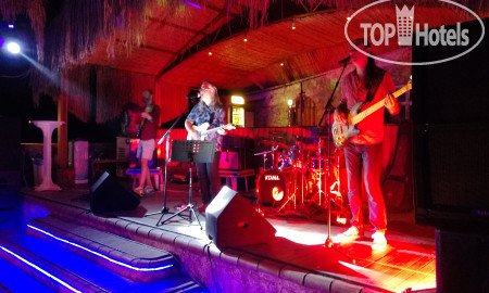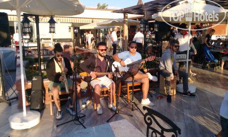 Рядом с одним из бассейнов до 17:00 и по вечерам до 23:00 рядом с амфитеатром звучит громкая музыка. Поэтому желательно заселиться в номера подальше от этих двух мест.